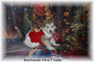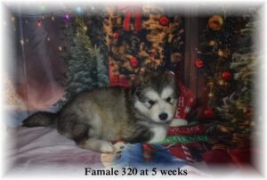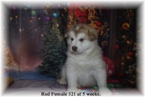 Will post pedigree soon. Pups at 4 weeks. 2 boys and 5 girls. One male and one female spoken for. Red Male and Female 320 are spoken for.
